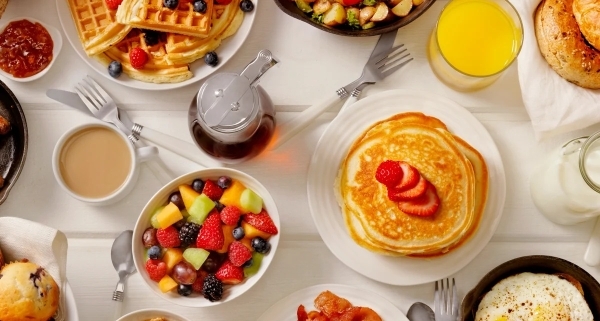 All You Can Eat Breakfast Buffet You can get regular or western style scrambled eggs, bacon, sausage, ham, potato gems, pancakes, French toast, sausage gravy & biscuits, fresh fruit salad, orange juice and coffee for just $13.00! Children under the age of 8 eat free